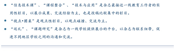 | 技术与应用 | 展现信息技术领域的新技术、新发展以及信息技术一线教师在教学中对技术的各种创新应用 | tougao1@www.0871trans.com |